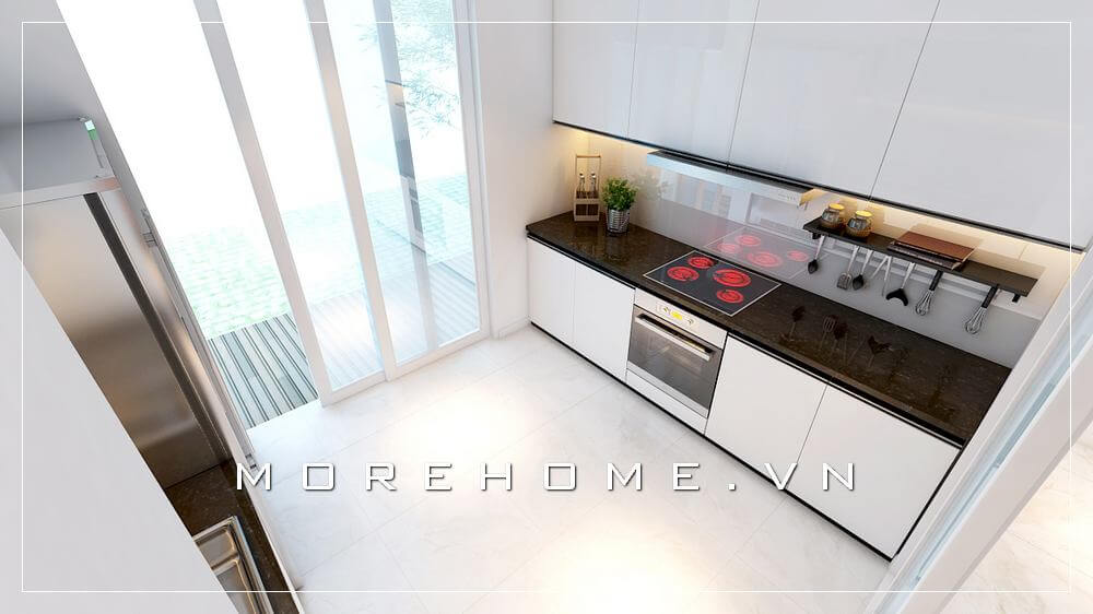 Với những căn hộ có diện tích nhỏ như chung cư thì tủ bếp chữ i được coi là giải pháp vô cùng tuyệt vời